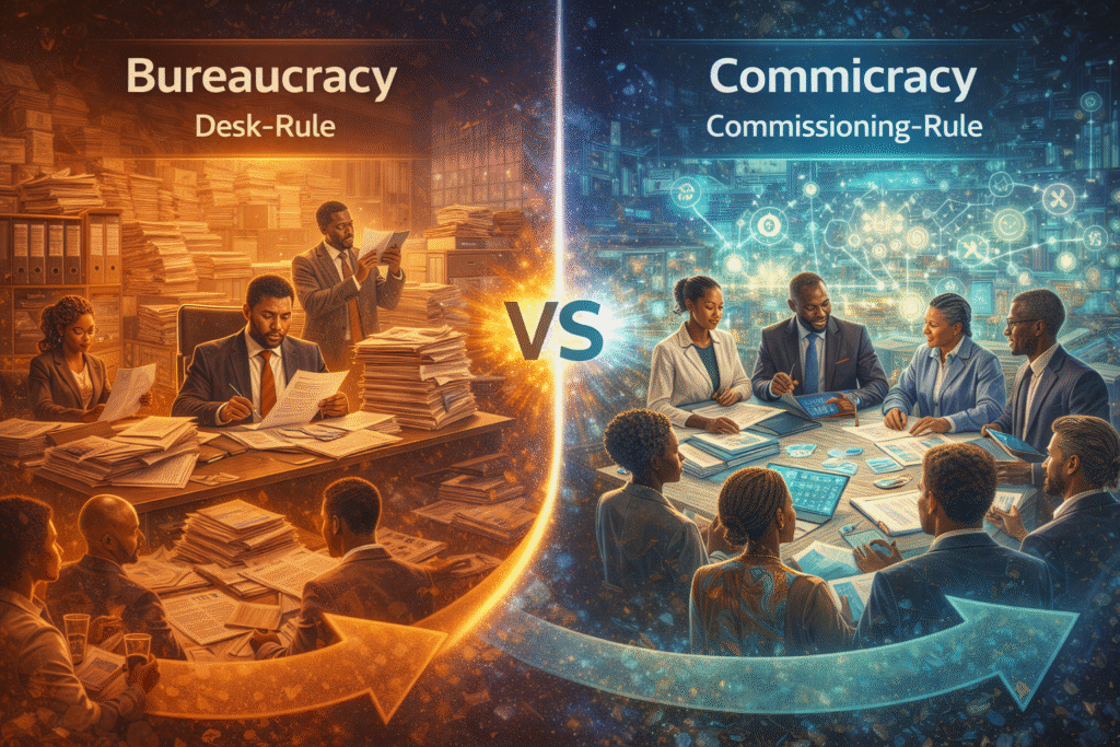 Volume-III of the Manifesto of the African Corporatist Society delivers a groundbreaking examination of commicracy—the natural organisational law of horizontal human relations that defines both the digital world and the structure of Nature itself. In this bold and uncompromising volume, the text reveals how bureaucracy—an artefact of outdated social eras—has become incompatible with the evolving consciousness of modern humanity and the interconnected digital landscape shaping our world.