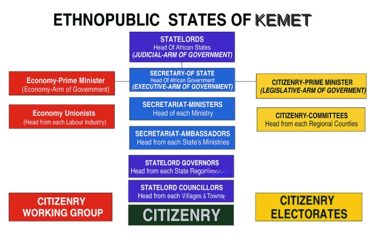 | Royal Administrators / Overseers of Departments | Secretariat-Ministers (Heads of each Ministry) | Just as ancient Kemet had departmental overseers (grain, irrigation, labour, justice, etc.), Ethnopublican Ministries ensure functional governance across specialised sectors. |